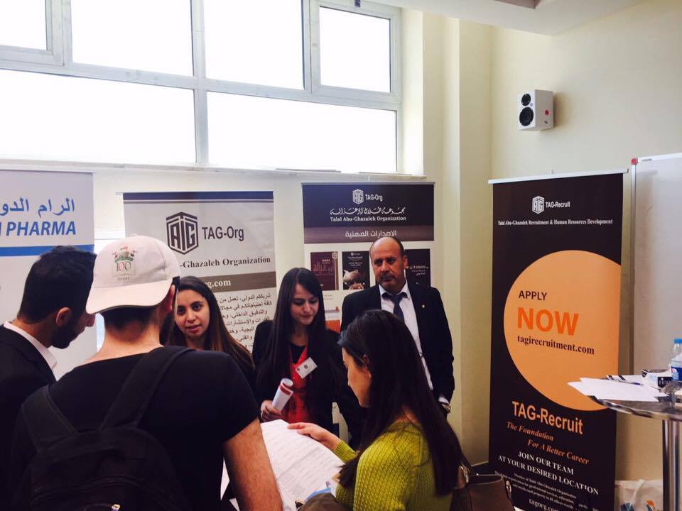 AMMAN - Talal Abu-Ghazaleh Organization (TAG-Org), represented by Talal Abu-Ghazaleh Recruitment (TAG-Recruit), took part in the job fair organized by Al Ahliyya Amman University, University of Jordan, German-Jordanian University and the United Nations Relief and Works Agency for Palestine Refugees in the Near East (UNRWA).