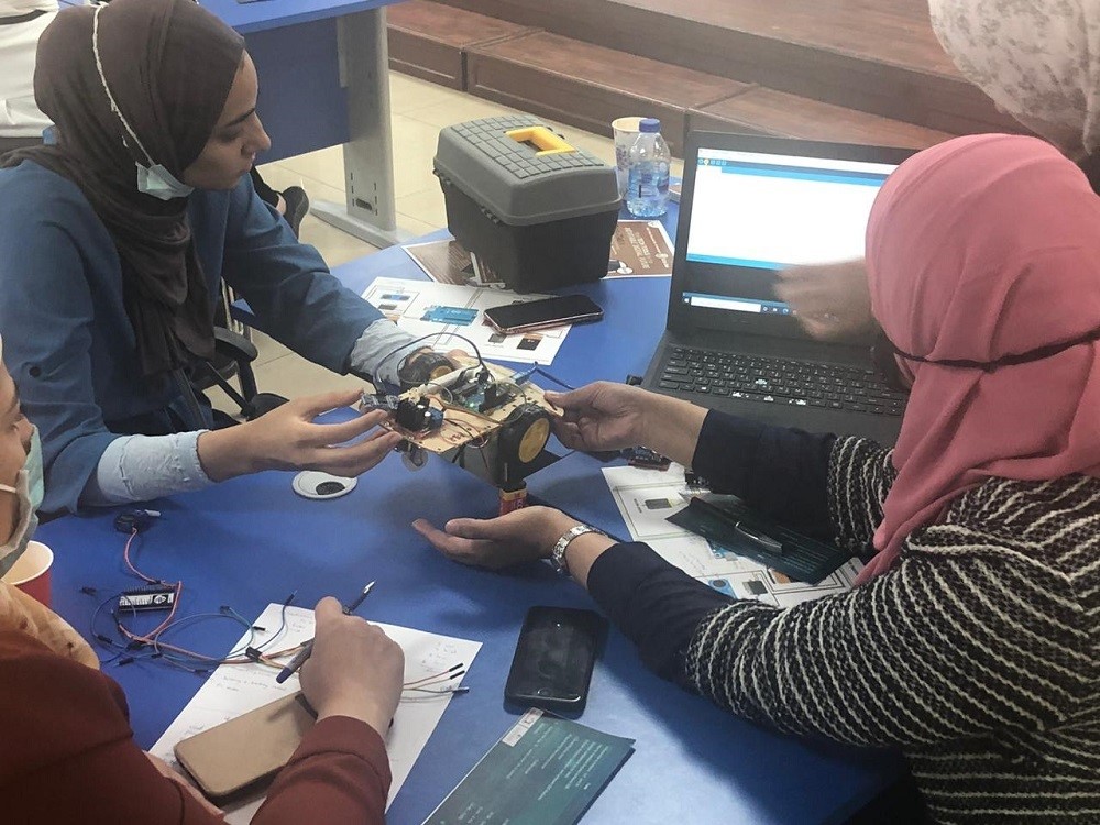 The 5-hour workshop introduced the 18 participants to the concepts of IoT, AI, Arduino Software and how to download it, designing interactive electronic projects, robotics programming among other related subjects.