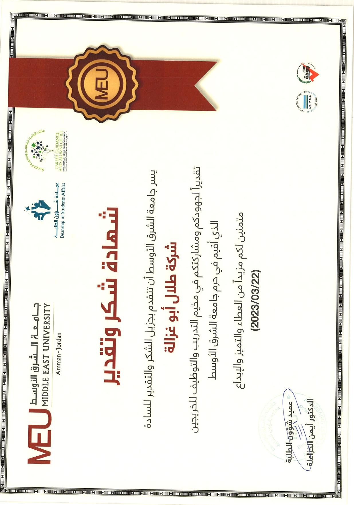 أبوغزاله للتوظيف" تشارك في اليوم الوظيفي في جامعة الشرق الأوسط